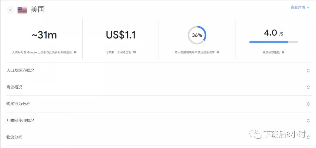 谷歌的全球商机通的数据都是免费的,数据也非常详细,大家可以去尝试下,也可以点开下面每个的类目去仔细看看,这对于做后续的营销推广有很重要的借鉴意义,比如这个国家用户的购买行为分析是怎么样的,主要通过哪些渠道,偏线上还是线下,线上哪些是主要渠道等等。