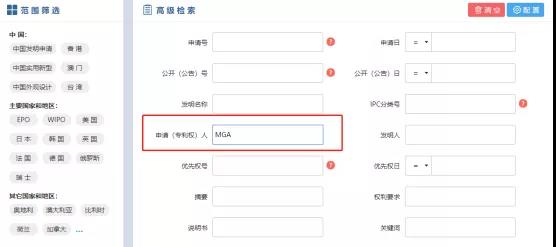 当如果知道明确的专利权人、发明人时则可以通过直接输入专利权人或发明人的方式进行检索,这样检索结果相对较少,方便筛选排查。当在查找专利权人时,建议大家可以尝试用产品上一些信息进行查询,从而查找到产品的权利人,再通过权利人去进行专利检索。