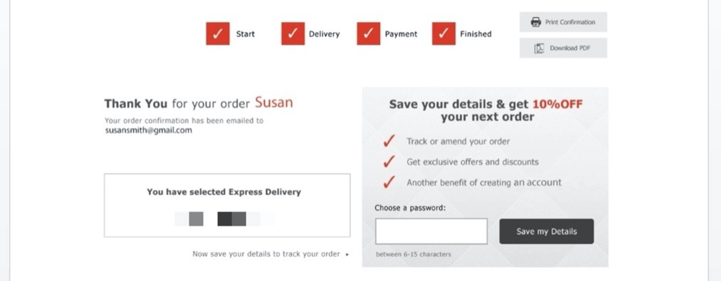 结账后可以选择弹出注册弹窗,如果消费者使用邮箱注册后系统会根据邮箱数据一并同步购买记录。即使消费者是复购时才注册账户,但依然能关联上并查出第一次的购买信息。除以上设置注册登陆界面的设置之外,还可以利用优惠券吸引消费者进行帐户注册。