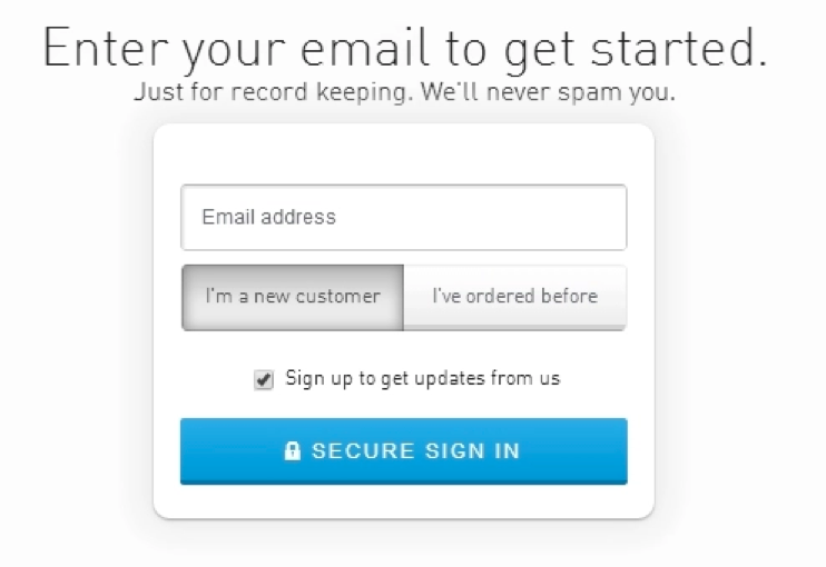 例如这个品牌机智地在消费者填写结账页面前添加收集消费者邮箱信息的表单,在结账过程中,消费者会不知不觉地留下联系方式。