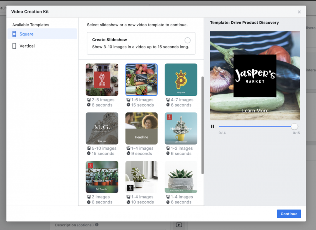如果希望更精致地展示商品,你还可以利用 Facebook 幻灯片广告从不同的角度展示同一商品。制作 Facebook 幻灯片广告时,你可以选择使用已有的图片素材,也可以从 Facebook 的免费图像集中选择。