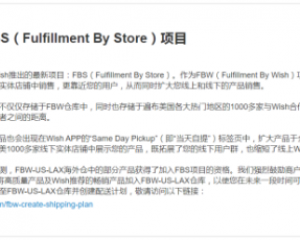 10月28日消息,近日,Wish悄然上线一个物流新项目——FBS(Fulfillment By Store)。该项目作为Wish立体化物流体系建设的一环,在WishPost全面上线、EPC合并订单服务覆盖欧美澳、Wish Express海外仓、FBW海外仓持续深化、A+物流计划走进新兴市场之后的又一物...