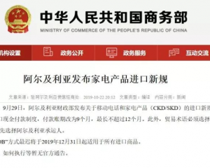 所有出货到阿尔及利亚的外贸、货代们请做好准备!阿尔及利亚对进口交易做出强制限定,不仅指定承运人,付款账期也延长!9月29日,阿尔及利亚财政部颁布新规,对进口阿尔及利亚的交易作出强制限定。新规的主要内容如下:1、进口阿尔及利亚的家电、手机(CKD/SK...