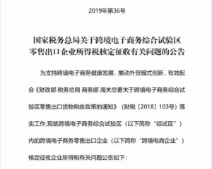 这两天,有一份《国家税务总局公告2019年36号》(国家税务总局关于跨境电子商务综合试验区零售出口企业所得税核定征收有关问题的公告)的pdf文件在跨境电商圈的各个群内传播。很多跨境电商卖家对应税所得率统一按照4%确定的条款非常感兴趣。可惜,很负责...