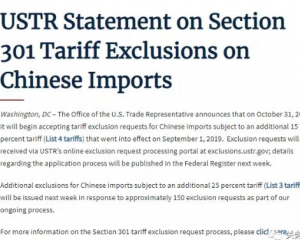 美国宣布对华3000亿关税加征清单将启动关税排除流程!