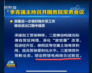 国务院总理李克强10月23日主持召开国务院常务会议,会议指出,要增设跨境电商综合试验区,尽快出台跨境电商零售出口所得税核定征收办法,简化小微跨境电商办理有关资金收付手续。国务院总理李克强10月23日主持召开国务院常务会议,听取国务院第六次大督查情况...
