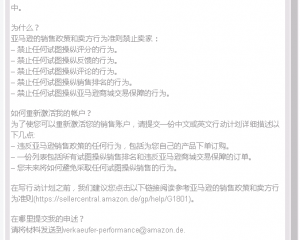 Feedbackwhiz发了一个关于亚马逊TOS的提醒邮件,我们来简单解读一下。如果你给买家发邮件时收到以下系统提示,那就是违规被限制邮件发送了。"This message was not delivered because your account was temporarily restricted from sending proactive message...