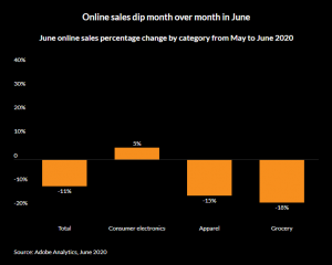 由于冠状病毒的广泛传播仍使许多购物者呆在家里,远离实体店,网上销售额同比显著上升。然而,根据Adobe Analytics的最新研究,在线支出正在逐渐减少。Adobe Analytics的报告显示,尽管美国6月份在线销售总额为732亿美元,较上年同期的415亿美元增长76.2%,但...