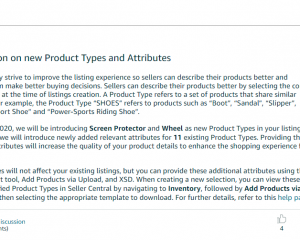 亚马逊昨日在后台发布公告,称将会新加入两个新的产品类目,分别是Screen Protector和Wheel这两个类目。新类目对卖家来说意味着更多选品机会,也能让消费者更精准地搜索到自己想要的产品,不管是对卖家还是买家都是件好事。不过我还是注意到了一个点...