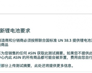 在卖家中心最近的通知中,亚马逊就锂电池及内含锂电池的相关产品做出最新的政策规范,根据通知,自2020年1月1日起,所有相关产品在发布产品时都必须提供联合国标准的UN38.3测试摘要,如果不能提供,产品将无法销售,而对于已存在的产品,则可能会被弃置,且费...