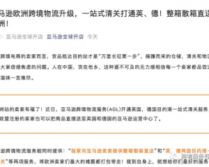 11月27日消息,近日,亚马逊欧洲站跨境物流服务(AGL)开通英国、德国目的港一站式清关服务。从即日起,非欧盟注册的卖家也可以把商品直接送至英国和德国的亚马逊运营中心。今后,亚马逊跨境物流服务能同时提供独家向亚马逊卖家提供整箱散装直送和英、德...