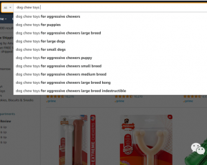 新进入亚马逊的小伙伴们在写商品详情页之前一定要确立好产品的关键词,没有关键词也就没办法来描写标题和描述以及特性。那么我们要如何快速的确立好产品关键词呢?1.在平台找,如图在搜索框中输入dog chew toys,亚马逊自动为你匹配了一系列的关键词。2.在竞争...