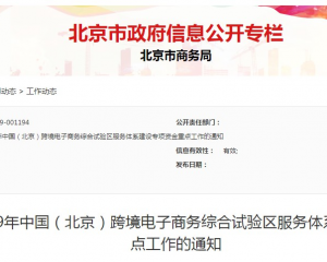 9月25日消息,小编获悉,北京市商务局昨日发布关于做好2019年中国(北京)跨境电子商务综合试验区服务体系建设专项资金重点工作的通知。充分发挥财政资金支持引导作用,完善北京跨境电商综合试验区服务体系,促进跨境电子商务持续健康发展。该通知显示,在北...