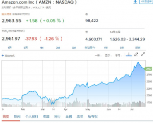 7月18日消息,美东时间7月17日收盘,亚马逊收盘下跌1.26%,报2961.97美元,本周累计跌幅为7.44%。这是该股自2月下旬以来表现最糟糕的一周。亚马逊股价此前已经连续10周上涨,创下有史以来最长的每周连涨纪录。亚马逊一直是Covid-19大流行期间表现最出色的公司...