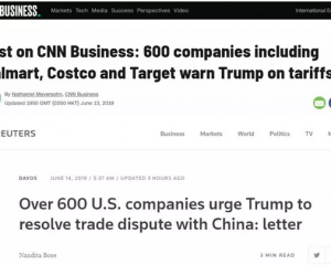 据英国路透社和美国CNN报道,包括美国最大零售商沃尔玛,以及Costco、Target、Gap、Levi Strauss、Foot Locker在内的600多家美国企业已经联名给特朗普上书,要求他停止与中国的贸易争端,因为这已经损害到这数百家美国企业和美国消费者的利益。报道称,这600...