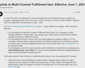 2020年12月,亚马逊迟了年度费用调整并减了费用,以在一个充满挑战的冬季为卖家提供支持。现在,正如当下情况亚马逊的下一次美国多渠道配送(MCF)费用调整将于2021年6月1日进行。亚马逊的2021年美国多渠道配送费用更改页面概述了更改,其中包括以下内容:亚...